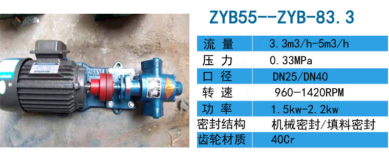 | ZYB-55 | G1″ | 3.3 | 55 | 0.33 | 1500 | 1.5 | Y90L-4 | |